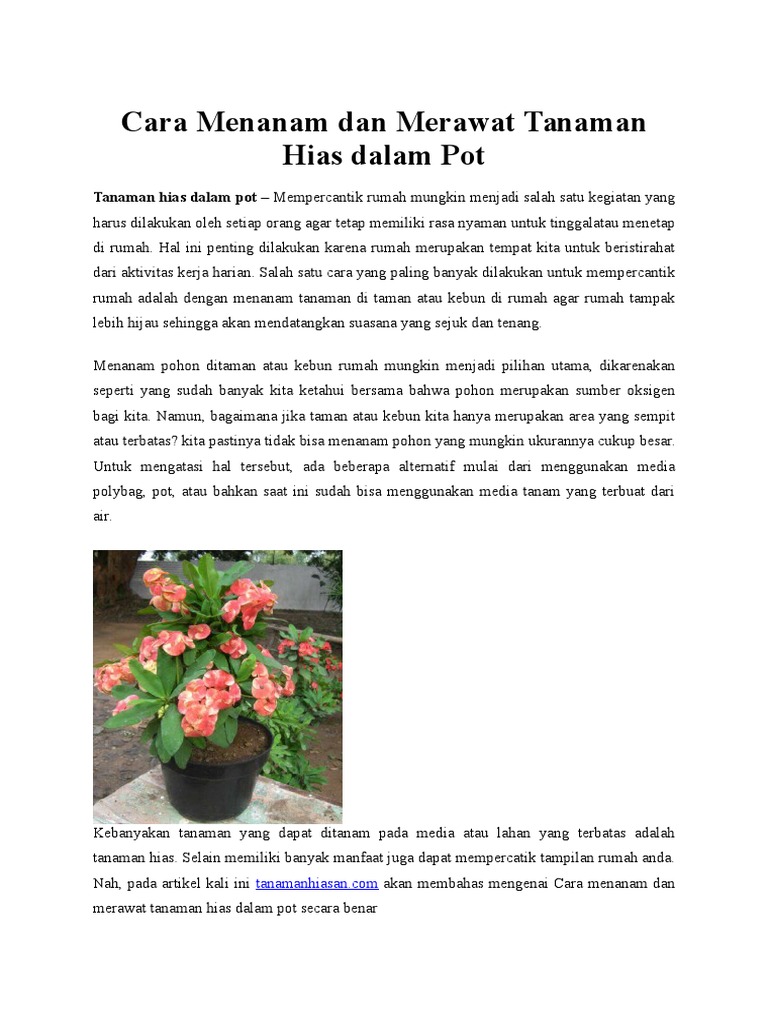 Cara Menanam Dan Merawat Tanaman Hias Dalam Pot